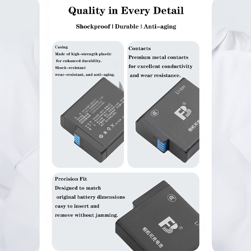 Powered by an intelligent protection chip, this battery delivers safer, smarter performance. It actively prevents overcharge, over-discharge, overcurrent, and overvoltage risks, ensuring stable operation in daily use. With added temperature control, short-circuit protection, and built-in safety mechanisms, your device stays protected in every shooting environment.