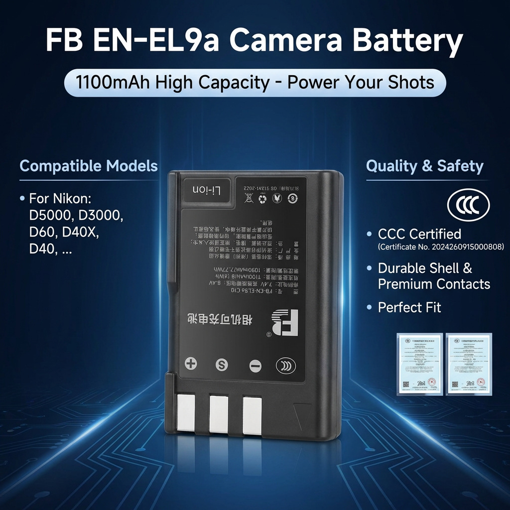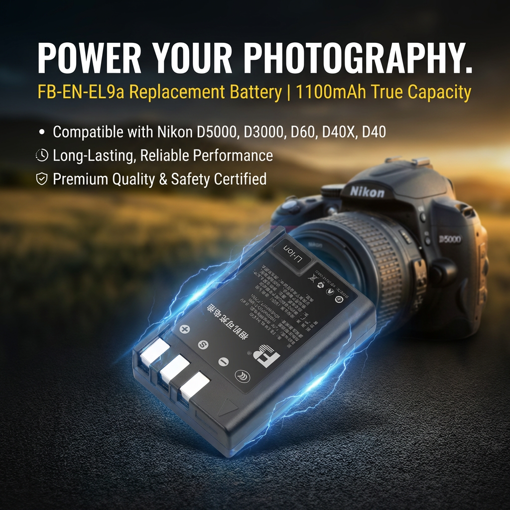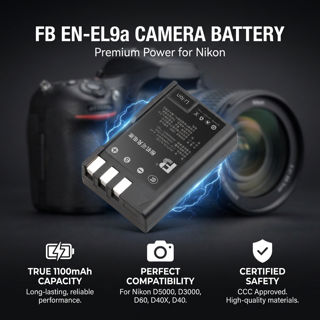 Revive Your Nikon DSLR with Premium Power Bring your trusty Nikon camera back to life with the FB EN-EL9a replacement battery. Featuring a true 1100mAh capacity, this battery offers reliable, long-lasting power for your photography sessions, ensuring you never miss a shot.