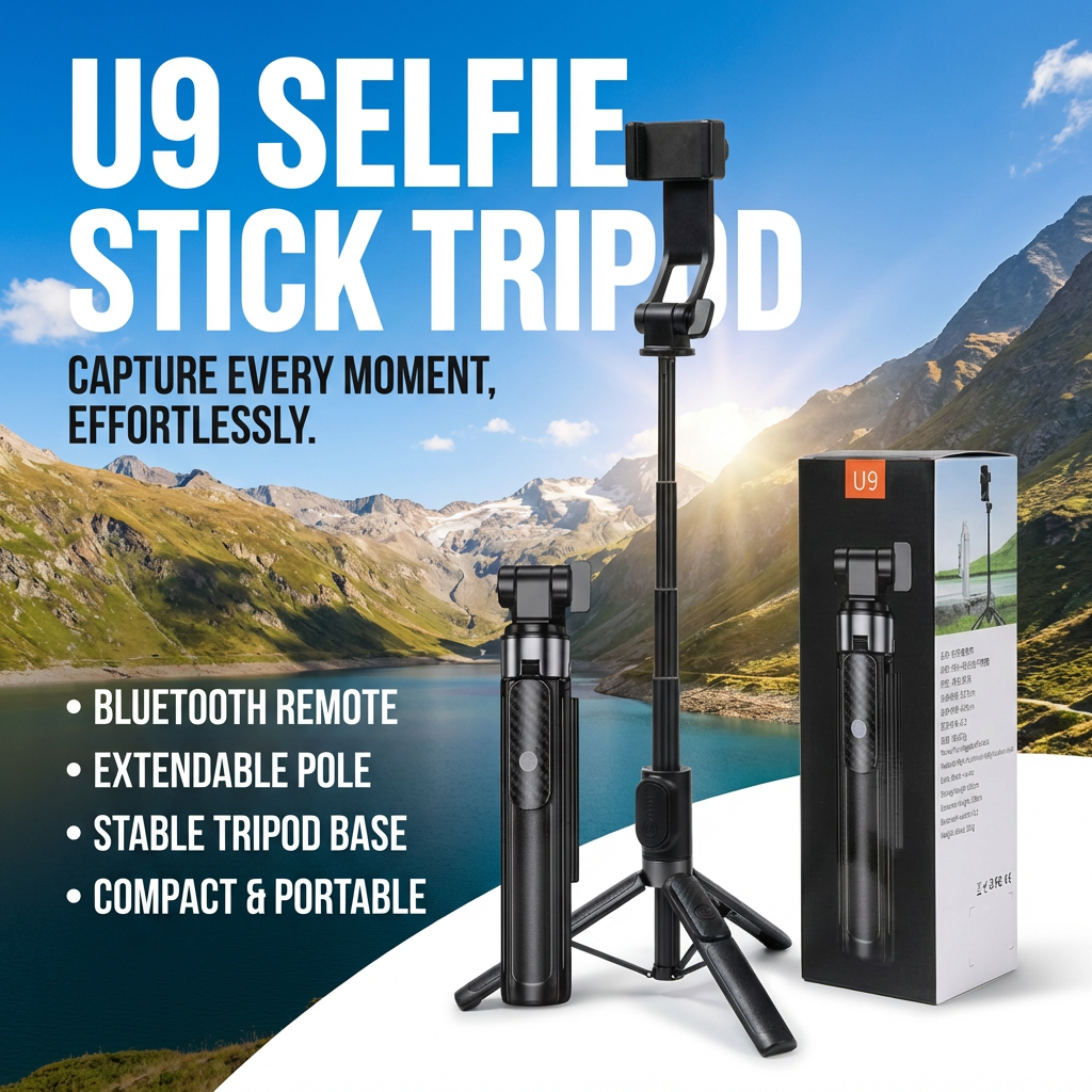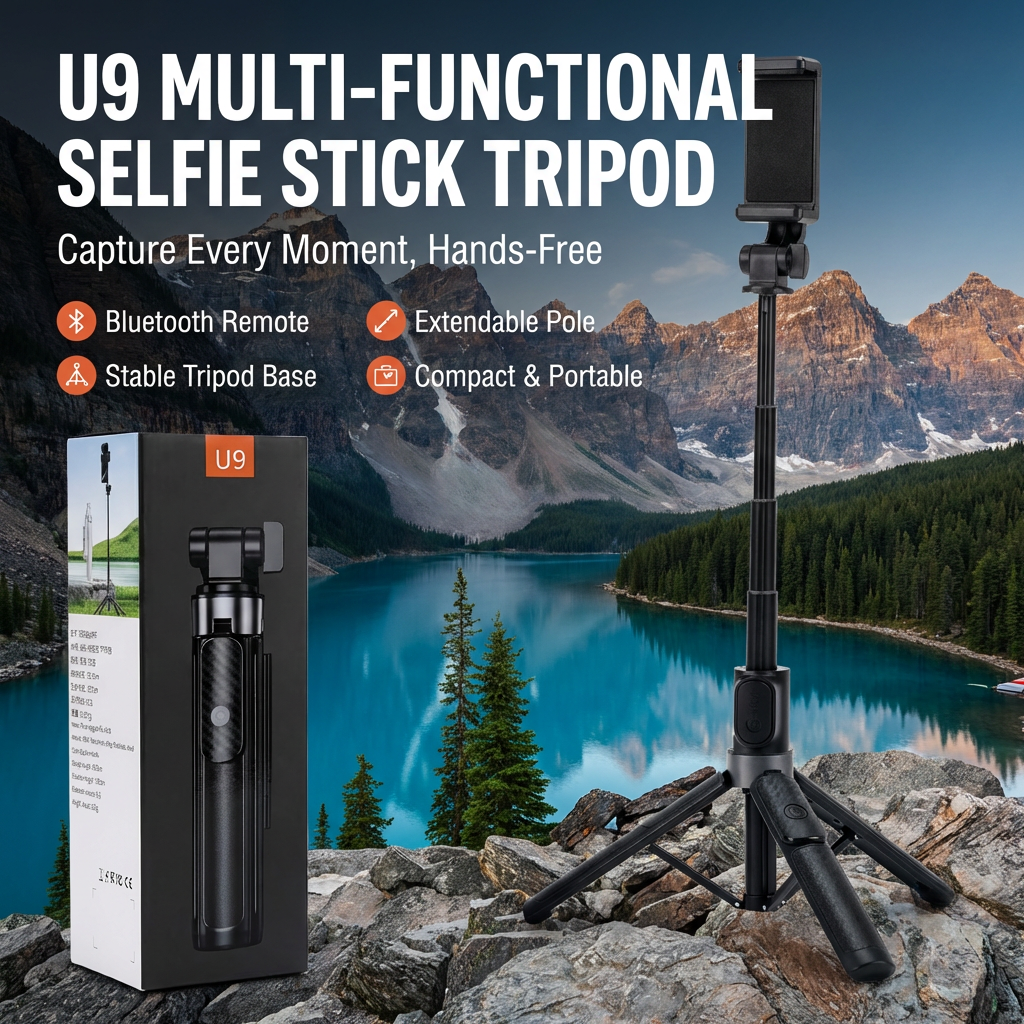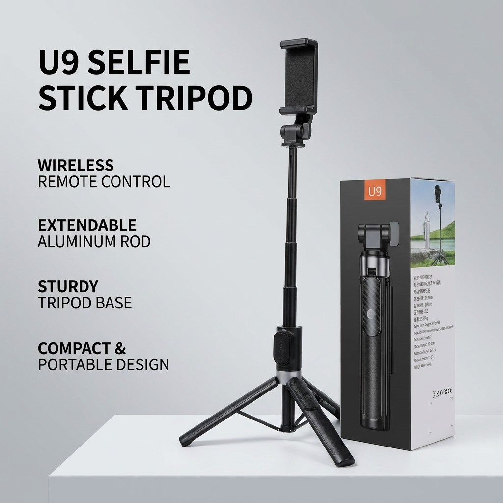 Product Overview: Elevate your content creation with the U9 Selfie Stick Tripod. Unlike traditional tripods, the U9 features an upgraded reinforced quad-leg base (four-point support), providing superior stability for outdoor photography, live streaming, and video calls. Whether you are capturing a group selfie or shooting a vlog, the detachable Bluetooth 5.2 remote ensures you are always in control.
